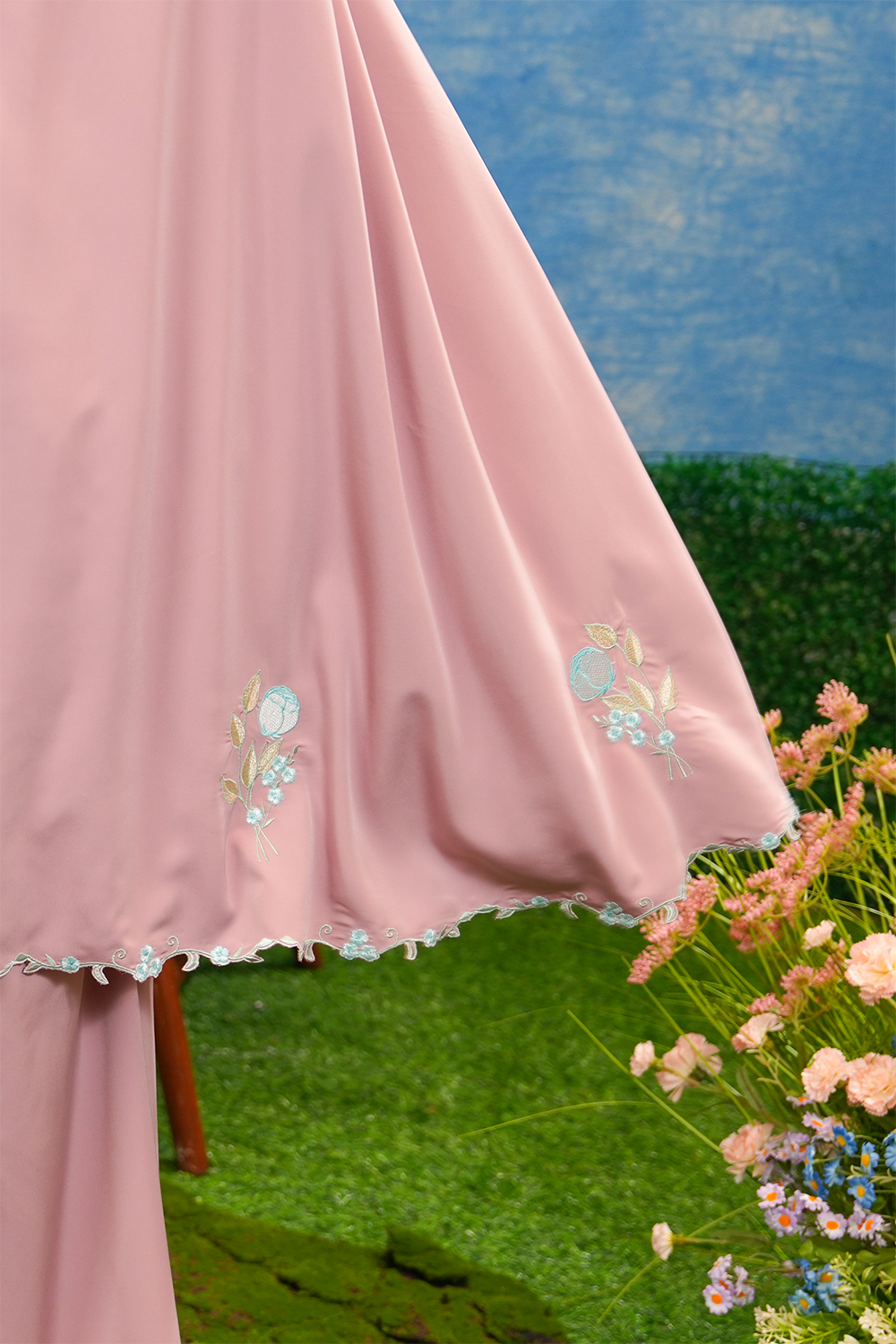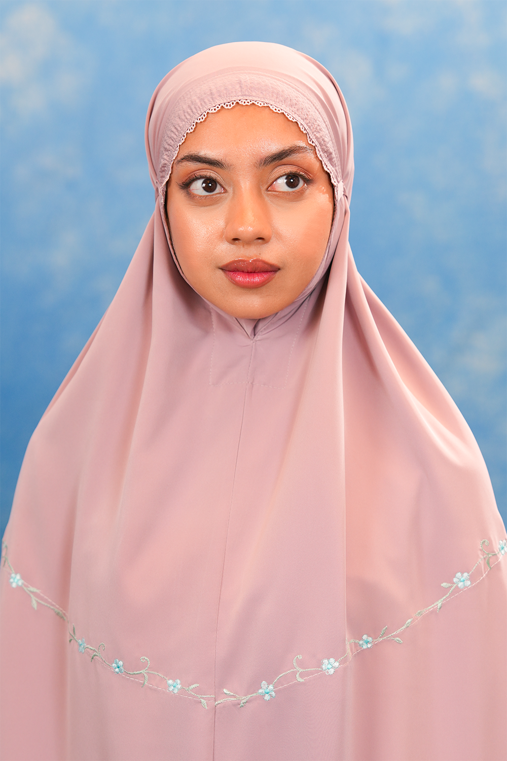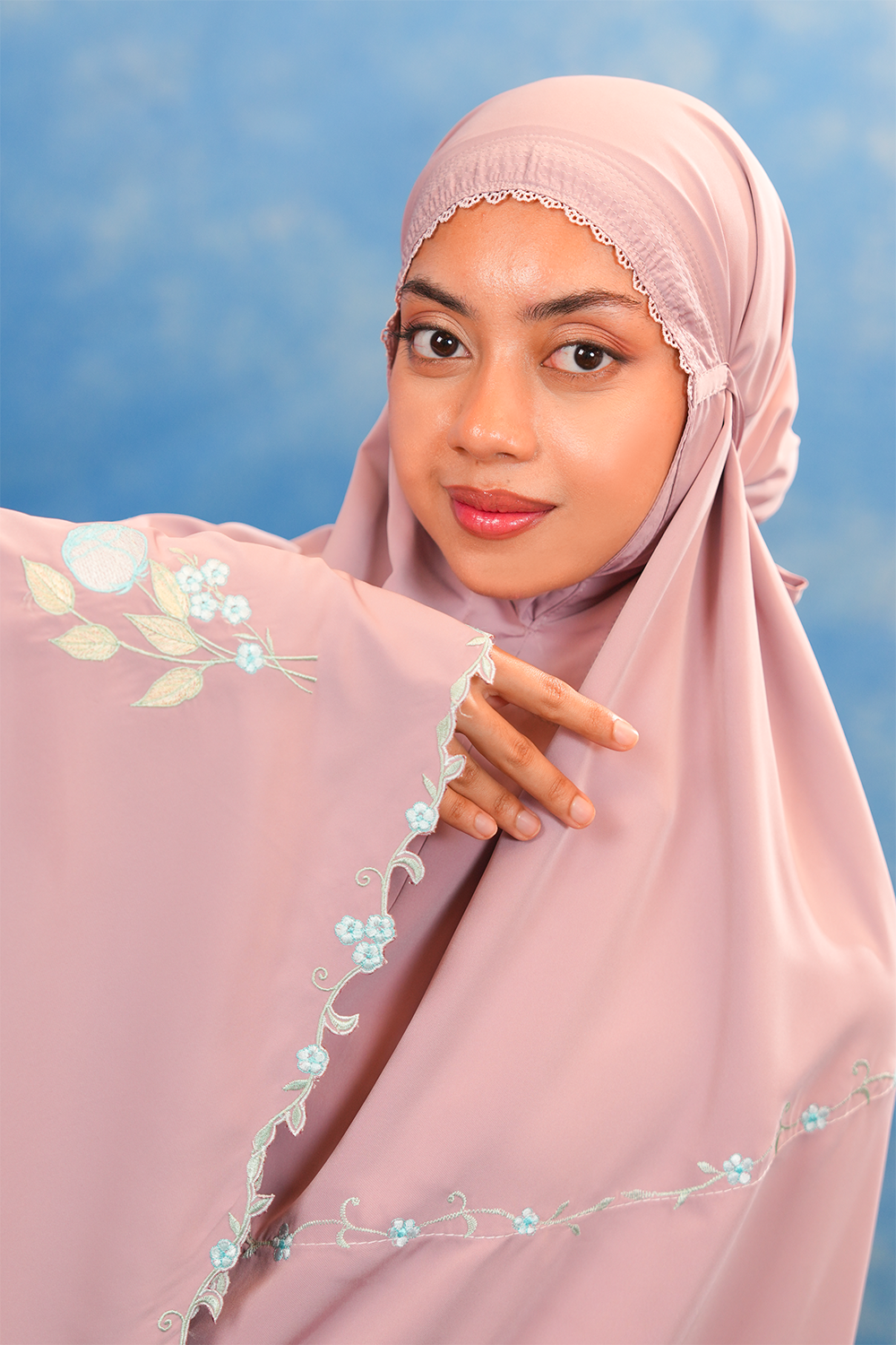 The Aurora Telekung is adorned with minimalist tulip florals in gentle pastel hues – reflects the simplicity of everyday moments — tulips that softly symbolise your day, calm, gentle, and unfolding at its own pace. Designed for those who appreciate subtle beauty, it carries a sense of calm femininity and timeless charm through refined, understated details.
