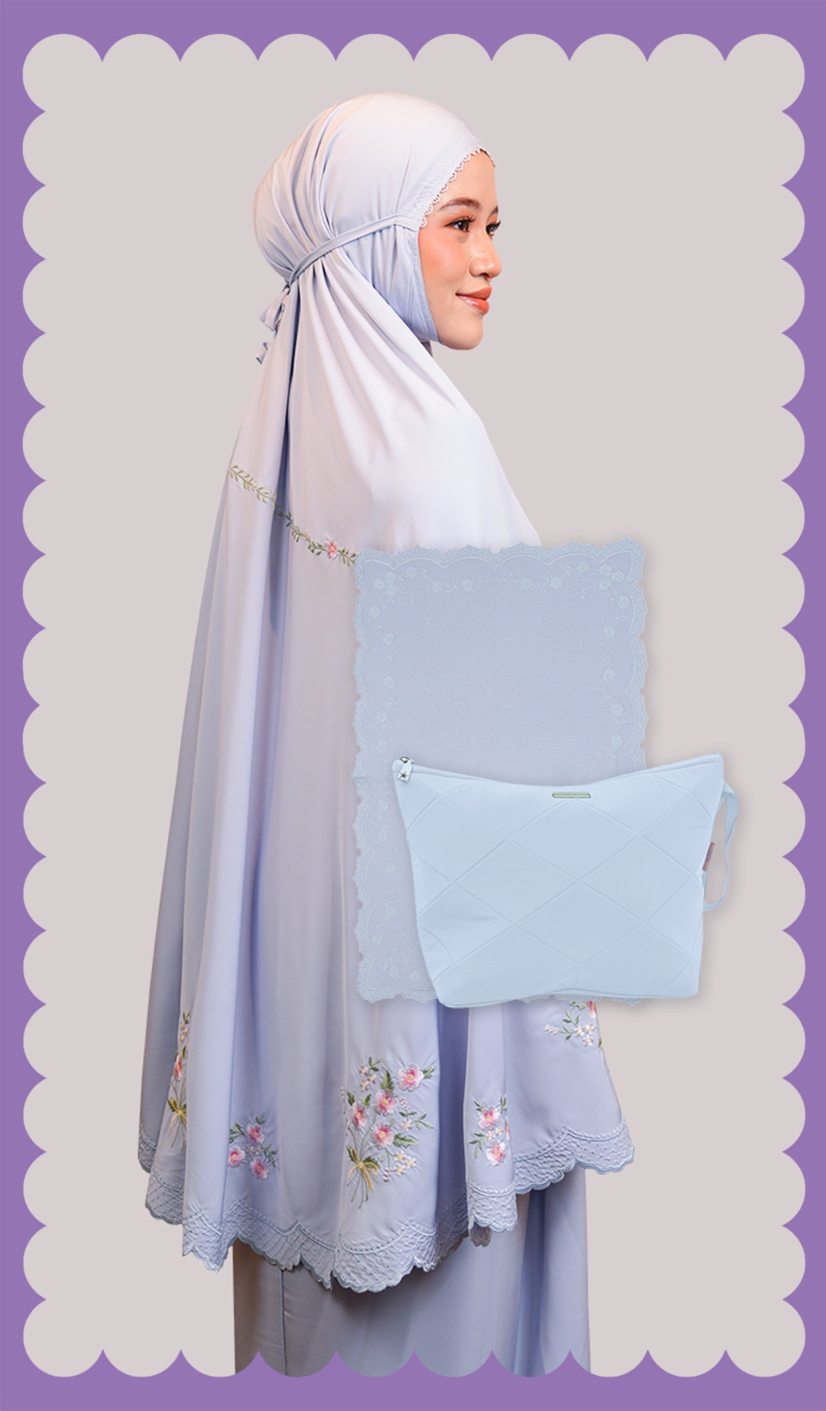 This exclusive set combines elegance and relaxation, featuring our Bestseller Raya Collection — Evalora Telekung paired with a Tea Roses Mini Sejadah in perfectly matching colours for a harmonious prayer experience. To complete the set, we include a matching colour of The Tea Bag, to neatly store and carry your telekung, making it convenient for travel or daily use.