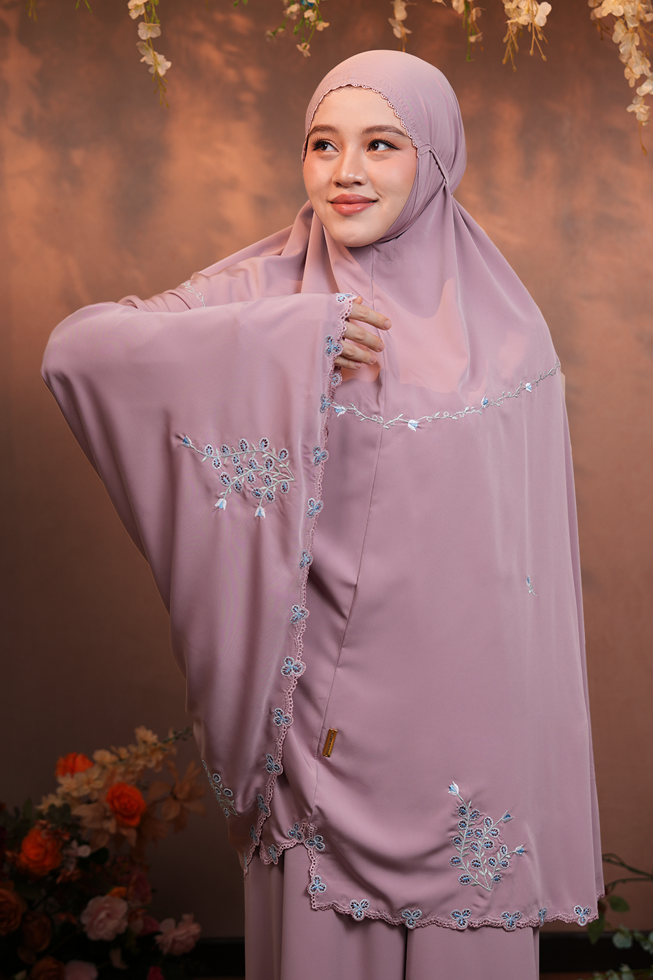 A delicate fusion of artistry and comfort, Arden is a beautifully embroidered telekung crafted on our ultra-soft Gelato fabric. The intricate eyelet embroidery weaves a graceful pattern of leaves with subtle flower buds, creating an exquisite, nature-inspired design.