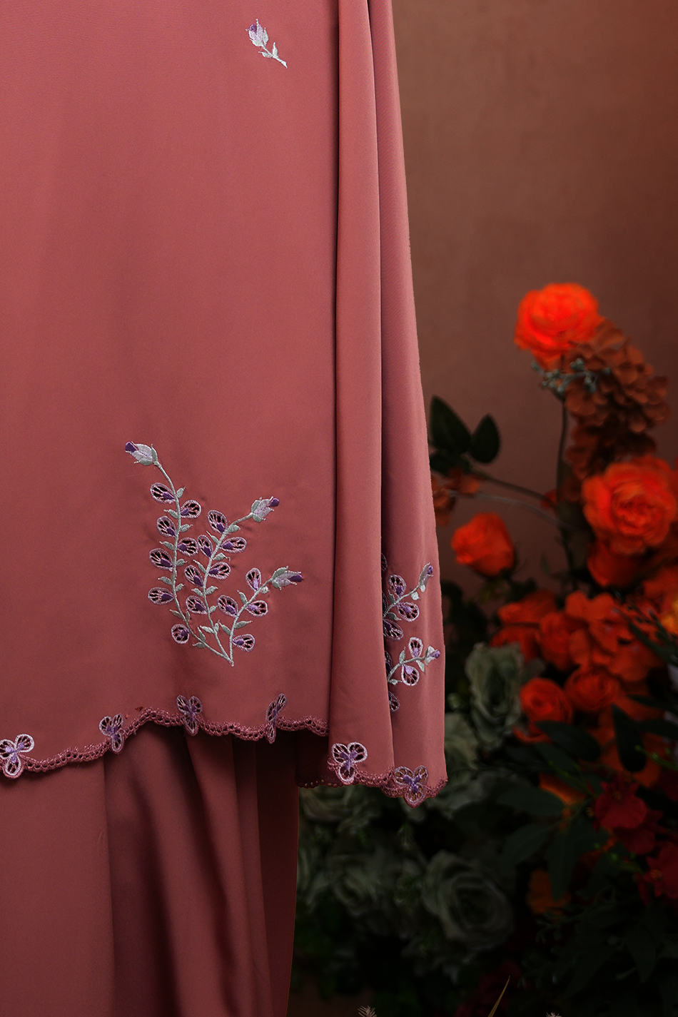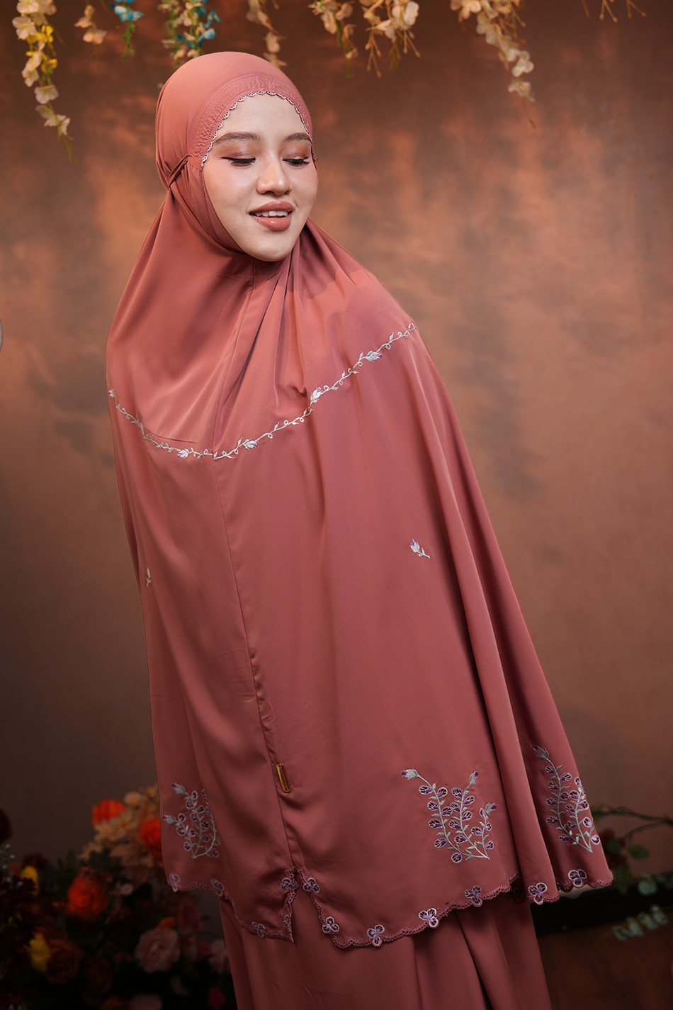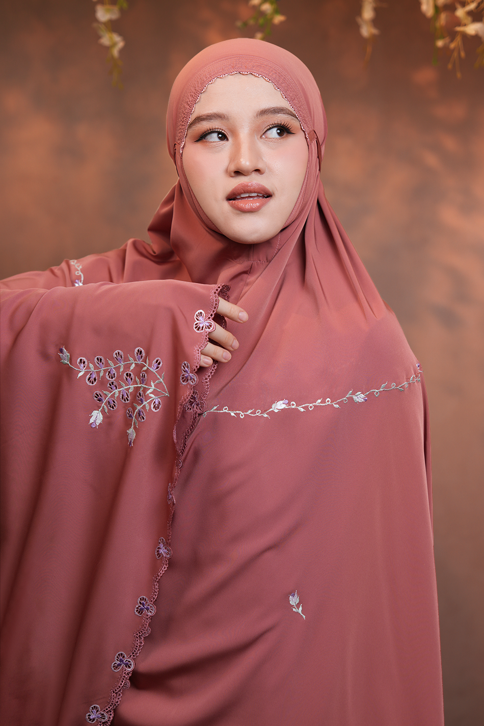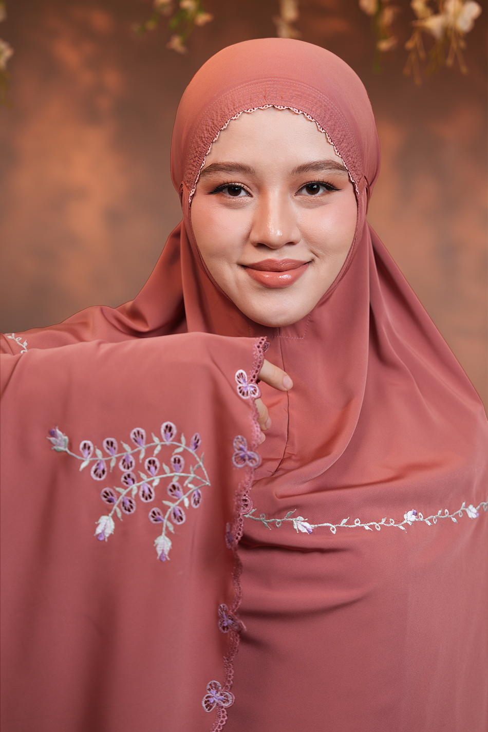 A delicate fusion of artistry and comfort, Arden is a beautifully embroidered telekung crafted on our ultra-soft Gelato fabric. The intricate eyelet embroidery weaves a graceful pattern of leaves with subtle flower buds, creating an exquisite, nature-inspired design.