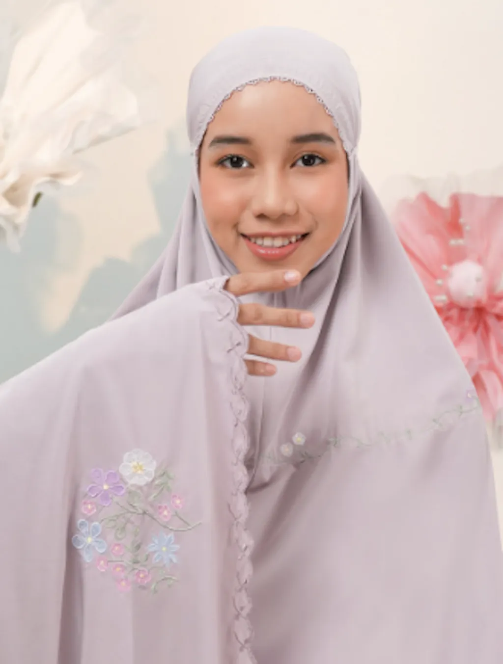 Step into a realm of tranquillity with the Lunara Telekung, a masterpiece of artistry and comfort. Inspired by the quiet glow of the moon and the delicate beauty of flowers, Lunara features intricate floral embroidery in soft hues of blue, purple, pink, and peach, making it a perfect companion for your most cherished moments.
