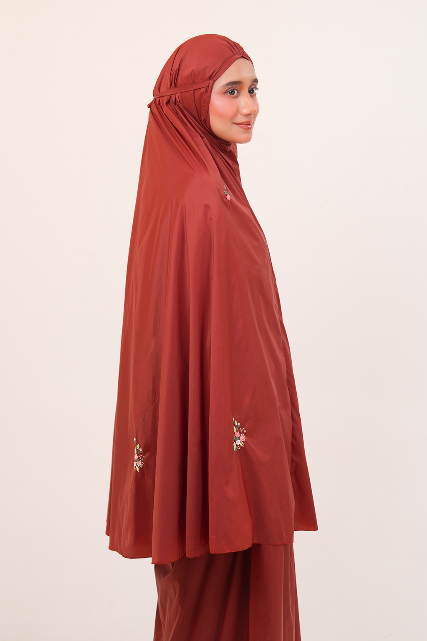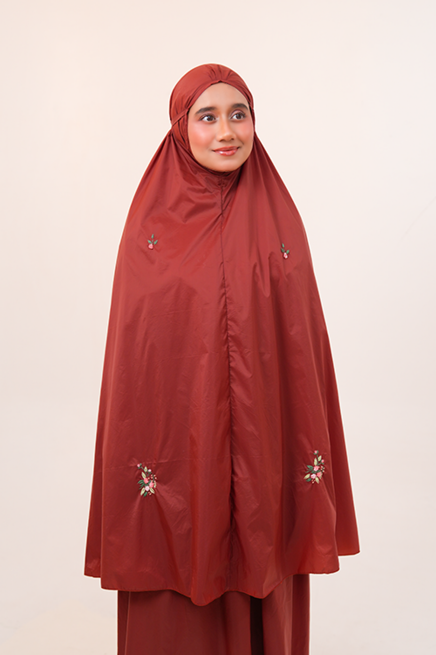 The Pocket Tea is a beautifully crafted two-piece telekung made from a lightweight premium nylon blend that’s cooling, travel-friendly, and requires minimal ironing—perfect for your everyday adventures and sacred journeys.