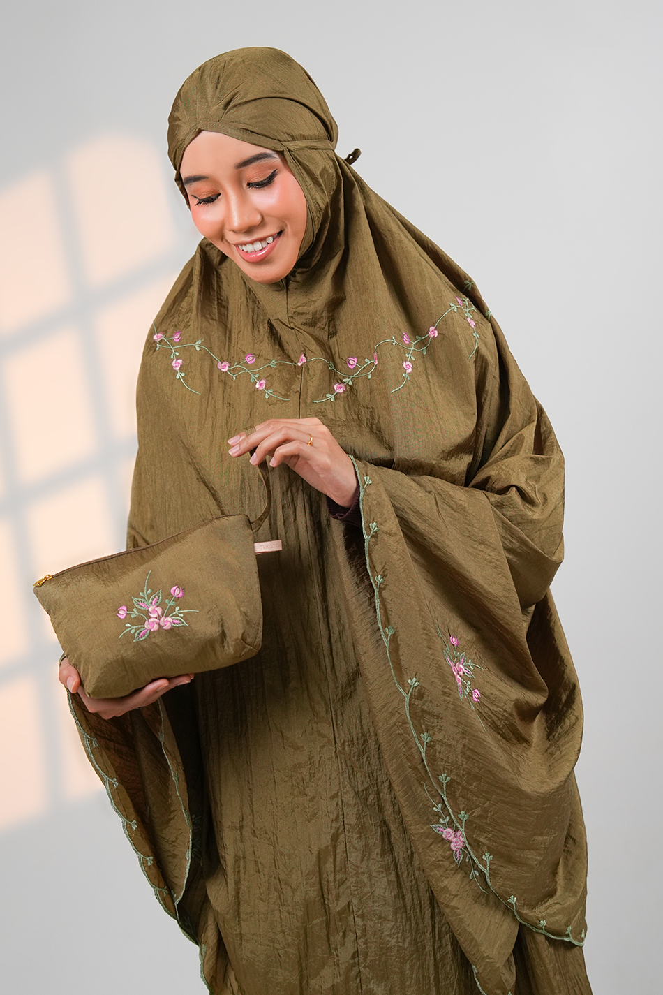 Lightweight and practical, the Travel Roses Telekung is made for women who need comfort and elegance in their prayer attire. Crafted from a nylon blend fabric, it is compact and easy to carry anywhere.